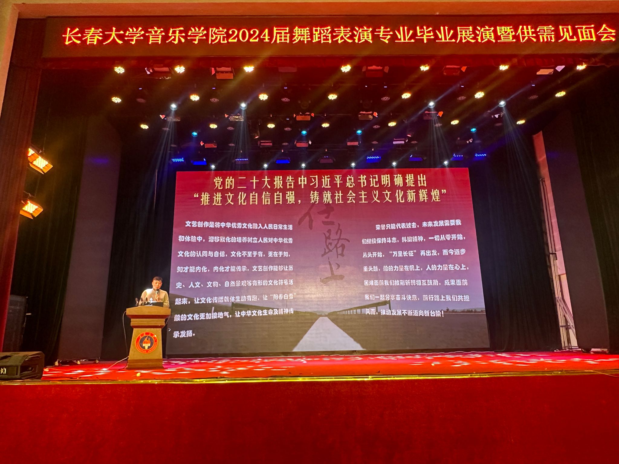 12月21日,音樂學院2024屆舞蹈表演專業畢業展演暨供需見面會在圖書館報告廳舉辦。學校黨委副書記王劍飛、副校長周婷婷出席本次活動。