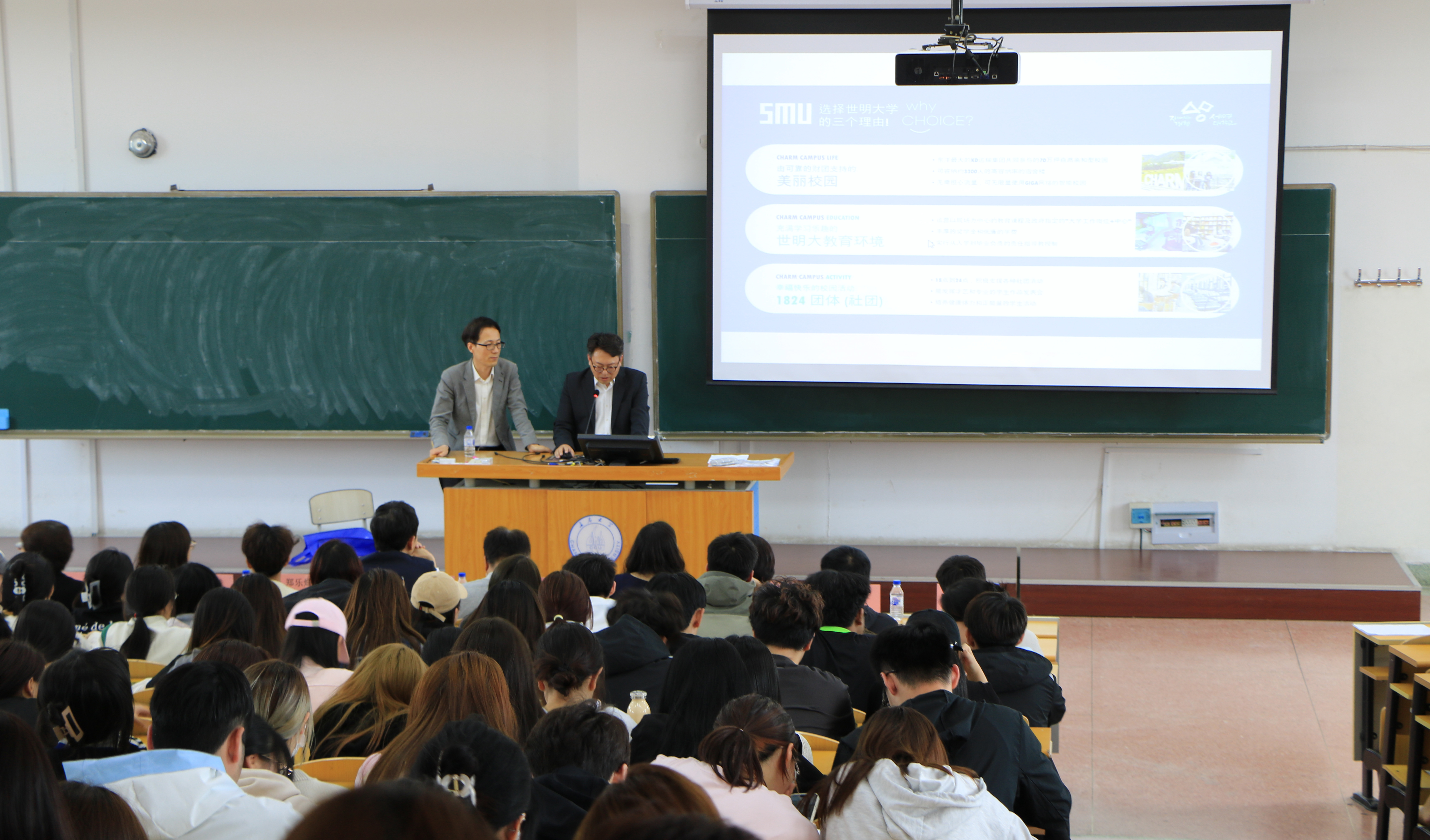 會后,舉行了合作辦學項目學生見面會,世明大學的5名派遣教師、長春大學與世明大學合作辦學專業2022級全體學生參加了見面會。世明大學國際教育學院副院長崔勇、國際處副處長金炳俊為學生們介紹了世明大學的基本情況和國際交流項目,世明大學多媒體專業教師鄭樂烽分享了自己的學習經歷以及國外留學的切身感受。